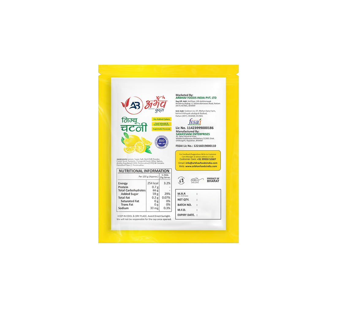 Whether you're a passionate foodie or simply looking to add a touch of zest to your meals, Arbhav Lemon Chutney will transport you to the heart of Indian culinary traditions. Indulge your taste buds and let the magic of this chutney take your dishes to new heights. Our chutneys, crafted by Arbhav Foods, are unparalleled in taste and quality. With the perfect blend of lemon and handpicked spices, This chutney strikes a delightful balance between sweetness and a hint of sourness, creating a truly delicious experience.